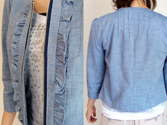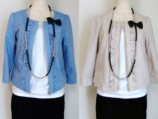 ノーカラーフリルジャケット